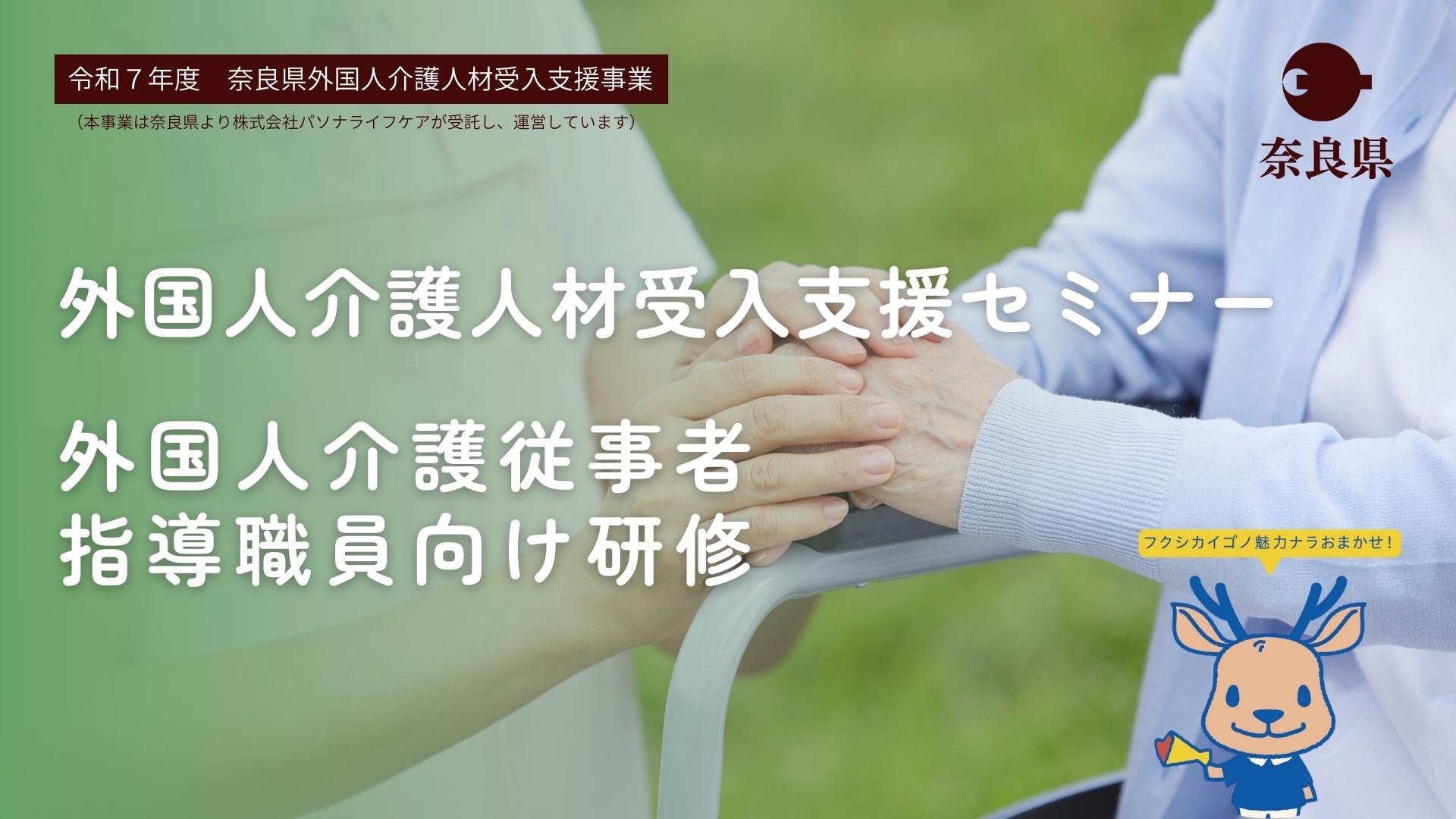 奈良県内の介護事業所向けに「外国人介護人材受入支援セミナー」および「外国人介護従事者指導担当者向け研修」を開催します。現場で活かせる具体的な支援方法や取組事例等を知ることができる貴重な機会です。ぜひご参加ください。